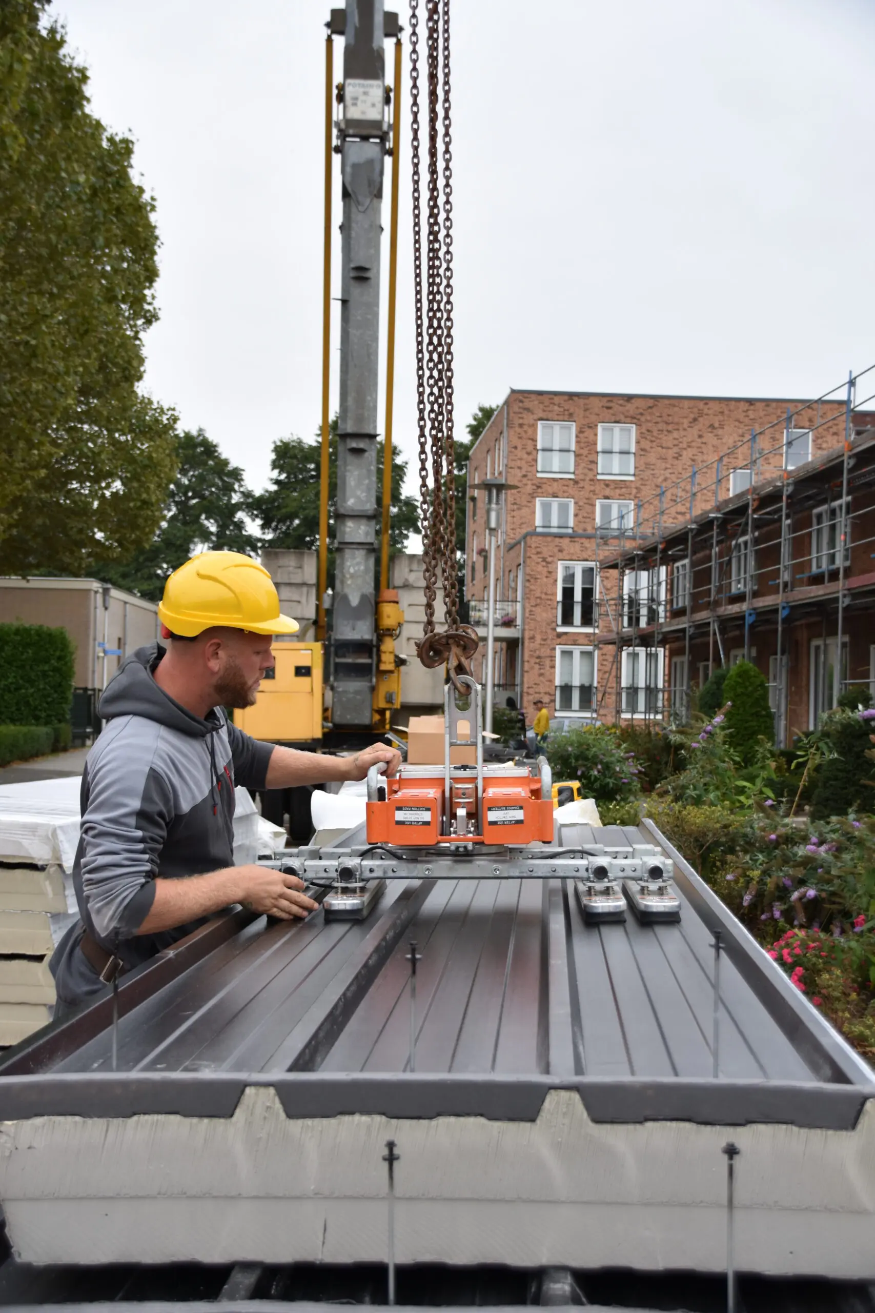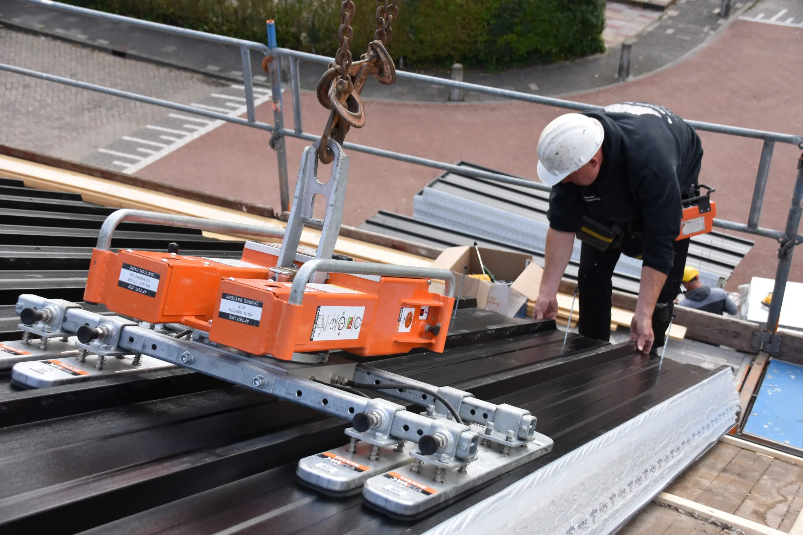 Le Flex est un palonnier à ventouses innovatif conçu par VIAVAC pour la pose d’un large éventail de profils de panneaux. Les ventouses ajustables, spécialement conçues, permettent à la machine d’être utilisée avec des panneaux de toiture allant jusqu’à 8 mètres ou des panneaux de bardage en horizontal ou vertical d’une longueur maximum de 10 mètres.